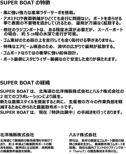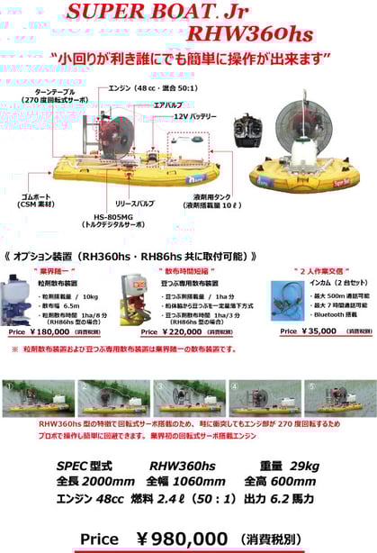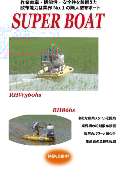 弊社製SUPER BOATを使用して、除草剤散布の請負作業を行っております。